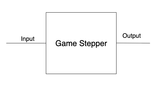 We can view the game’s state as encapsulated in the game stepper; nothing outside of the game stepper may modify its internal state. The game evolves over a sequence of discrete time steps. At each time step, the game stepper must compute two quantities.