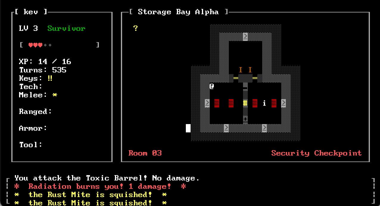 MegaZeux is a game creation system from the 90s, whose games take place on a grid of 8x14 pixel images. That’s right: in a typical MegaZeux game, every significant object, whether a goblin, a wall, or a tree, is depicted using an 8x14 image. This extreme constraint comes from DOS text-mode graphics, where textual documents were displayed in grids of 8x14 pixel characters. While 8x14 might be a reasonable size to depict a single letter of the Roman alphabet, depicting something more complex, like a human, is much more challenging. As a result, players do not expect the graphics of a MegaZeux game to look good. For a game developer, depicting a game world using simple abstract art rather than poring over complex visual details greatly reduces the effort used to bring a game world to life.